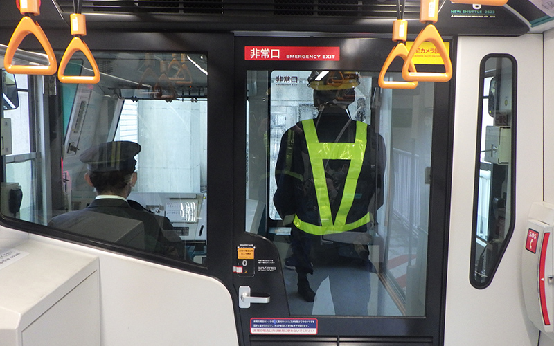 ニューシャトルは、ワンマン運転なのでドア閉めなどの操作も運転士が行う。学校や仕事から帰宅する人で混雑するので、特に注意する。