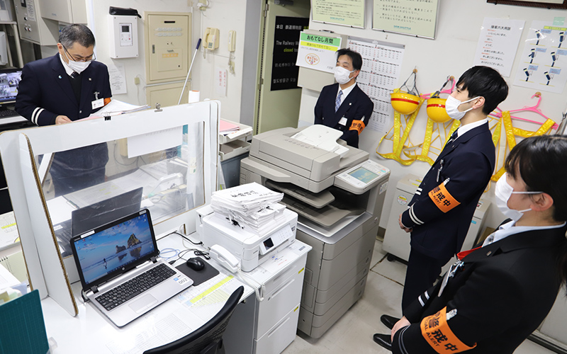 駅事務室の掃除や、券売機・自動改札機などの消毒を行います。