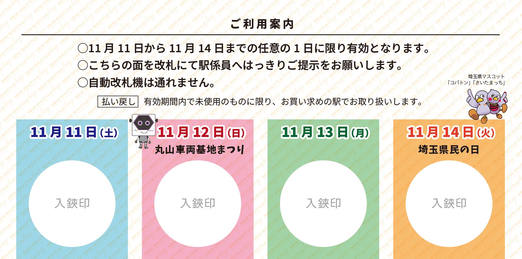 「丸山車両基地まつり」へお越しの際や「埼玉県民の日」にお出かけの際に、ぜひご利用ください。