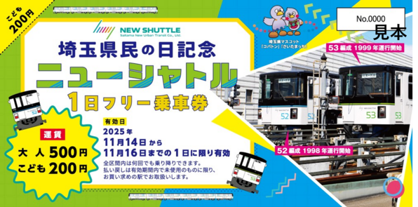※「埼玉県民の日記念フリー乗車券」は、下記URLをご参照ください。