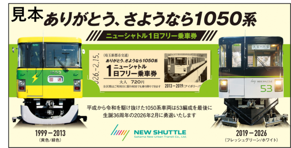 「ありがとう、さようなら1050系」ニューシャトル1日フリー乗車券の発売について